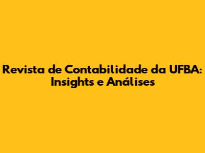 Revista De Contabilidade Da UFBA: Insights E Análises
