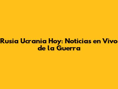 Rusia Ucrania Hoy: Noticias En Vivo De La Guerra