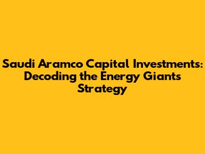 Saudi Aramco Capital Investments: Decoding The Energy Giant