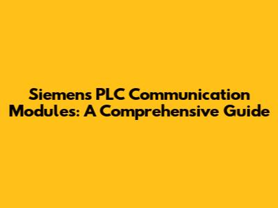 Siemens PLC Communication Modules: A Comprehensive Guide