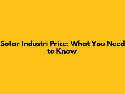 Solar Industri Price: What You Need To Know