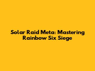 Solar Raid Meta: Rainbow Six Siege Strategies
