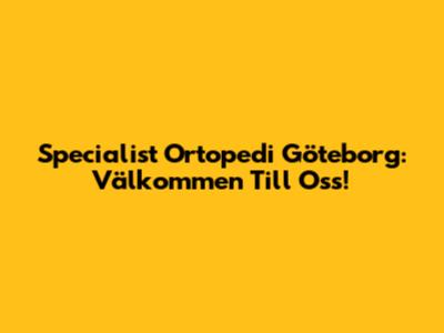 Specialist Ortopedi Göteborg: Välkommen Till Oss!
