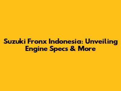 Suzuki Fronx Indonesia: Specs & Engine Explained