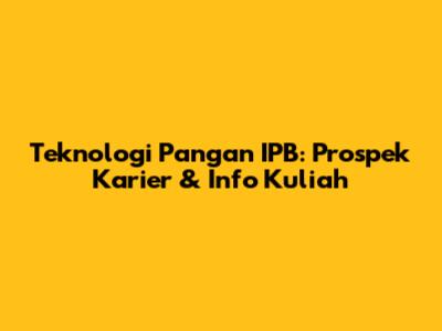 Teknologi Pangan IPB: Prospek Karier & Info Kuliah