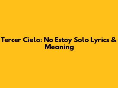 Tercer Cielo: No Estoy Solo Lyrics & Meaning