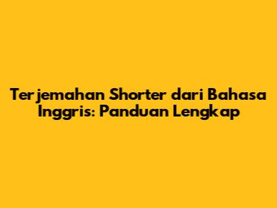 Terjemahan 'Shorter' Dari Bahasa Inggris: Panduan Lengkap