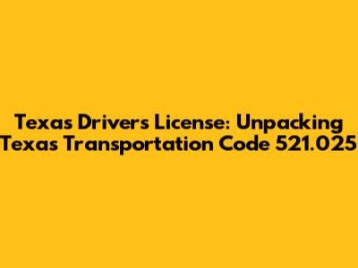 Decoding Texas Transportation Code 521.025: The Basics