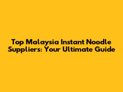 Top Malaysia Instant Noodle Suppliers: Your Ultimate Guide