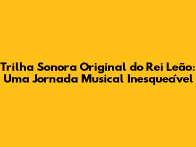 Trilha Sonora Original Do Rei Leão: Uma Jornada Musical Inesquecível