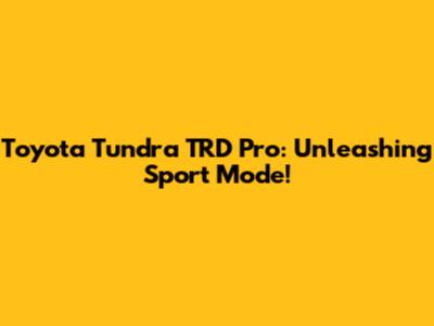 Tundra TRD Pro: Unleashing Sport Mode!