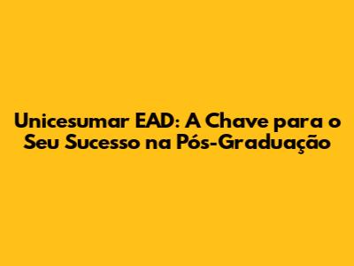 A Unicesumar EAD oferece todo o suporte necessário para que você tenha sucesso em sua pós-graduação. Com dedicação e esforço, você pode alcançar seus objetivos e construir uma carreira de sucesso. Então, o que você está esperando? Inscreva-se agora mesmo e comece a transformar o seu futuro!