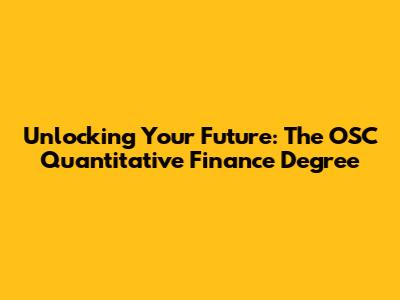 Unlocking Your Future: The OSC Quantitative Finance Degree