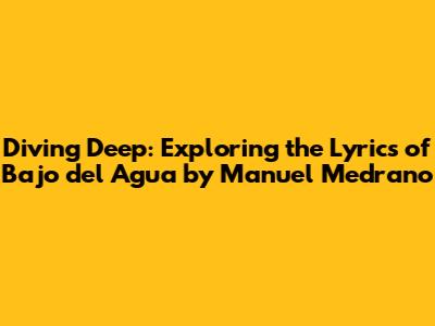 Unpacking 'Bajo Del Agua': Manuel Medrano's Lyrics Deep Dive