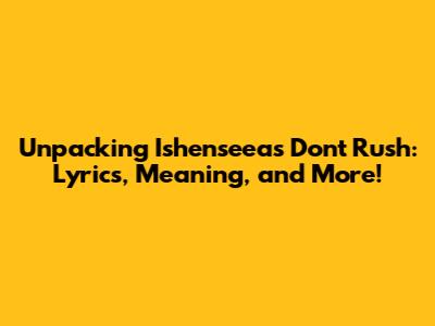 Hey music lovers! Ever gotten a song stuck in your head and just had to know everything about it? Well, today, we're diving deep into the infectious vibes of Ishenseea's 'Don't Rush'. This track has been making waves, and for good reason! We're gonna break down the lyrics, uncover the meaning, and explore what makes this song so darn catchy. So, grab your headphones, get comfy, and let's get started!