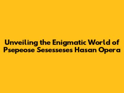 Unveiling The Enigmatic World Of Psepeose Sesessese's Hasan Opera