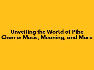 Unveiling The World Of Pibe Chorro: Music, Meaning, And More