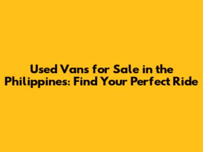 Used Vans For Sale In The Philippines: Find Your Perfect Ride
