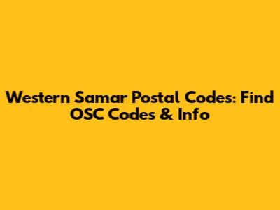 Okay, let's get down to the main question: how do you find the OSC postal code in Western Samar? The term "OSC" might refer to a specific office, building, or locality within Western Samar. To find the precise postal code, you'll need to identify the exact location you're looking for.